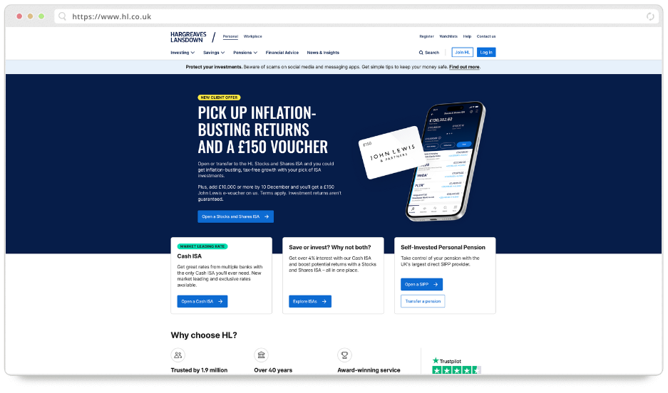 24. Finance and investing websites – e.g. Hargreaves Lansdown, Trading 212