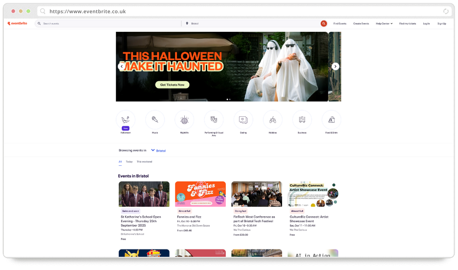 Users of event websites can browse upcoming events in their area or select a certain location and category in order to search for something specific - allowing the event organiser to get their event in front of more people than would otherwise be the case.