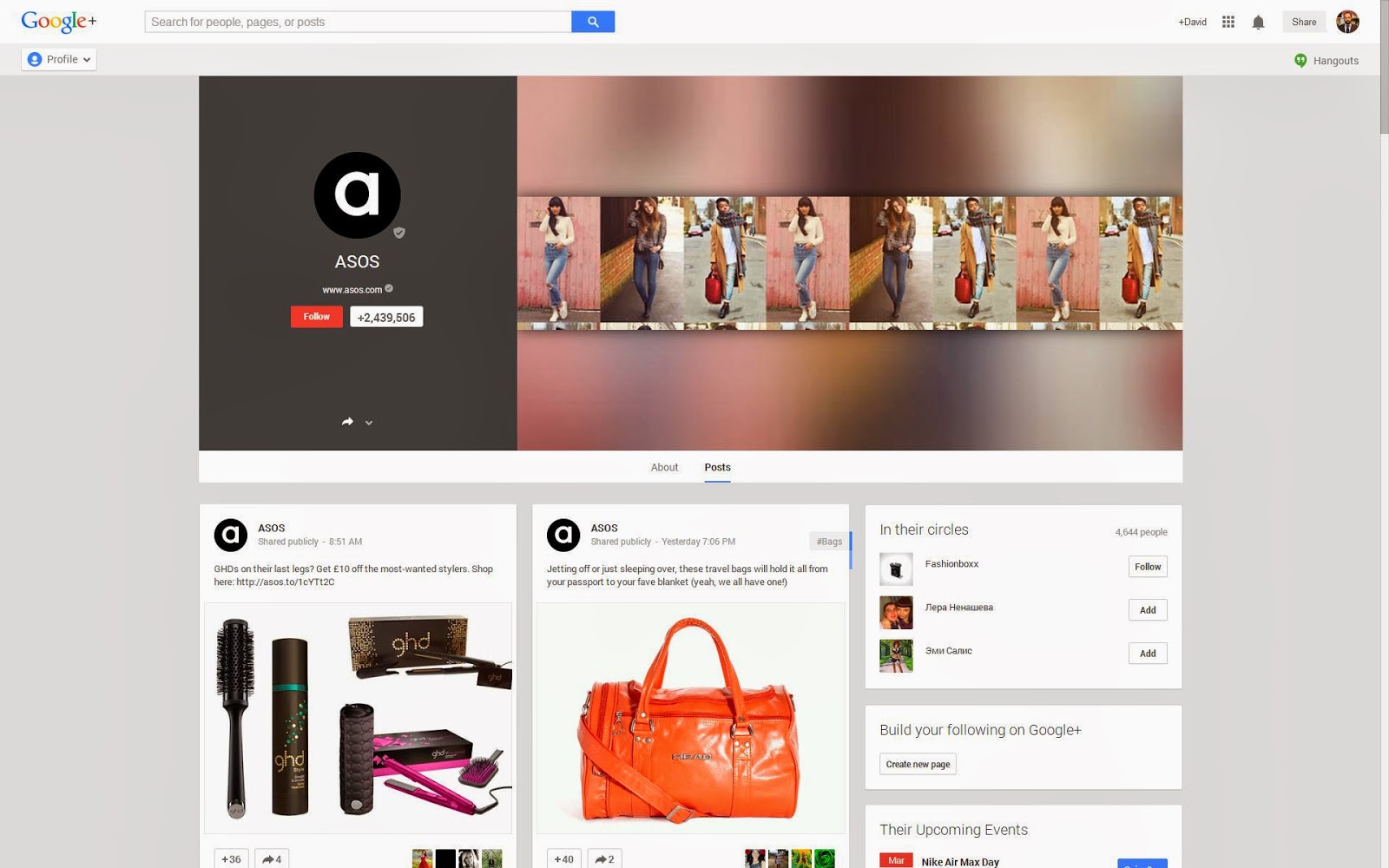 Asos also use Google+ to give company updates on internships, offers and competitions - whilst still promoting their products.