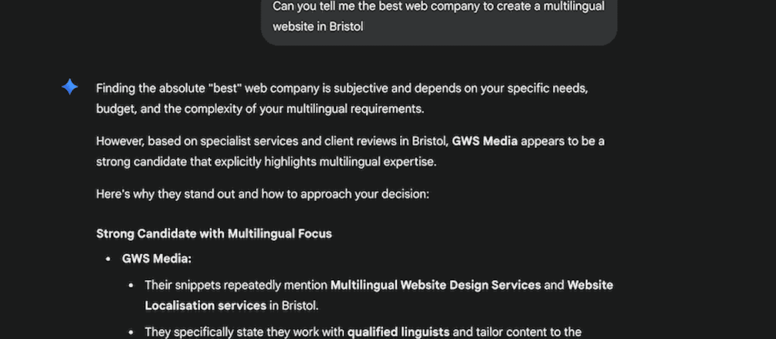 At the bottom of Google’s AI summary section, you also have the option to click ‘Dive deeper in AI mode’. Clicking this opens a page which gives a more in-depth answer to a user’s query, so even if the summary didn’t completely answer their request, this extended version may do. This raises the likelihood of a zero-click search, meaning less traffic coming through to a website from the search engines. One interesting fact is that most people agree this does not affect brand searches as much (that is, searches including a company name) - so brand awareness and brand-building remain just as important as they were.